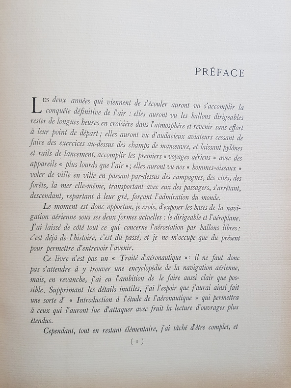 In 4 pleine toile rouge d’éditeur,plaque dorée animée à décor d’avions et dirigeable sur fond de Paris et tour Eiffel avec titre doré.Faux-titre,frontispice,titre,249 pages sur vergé,80 diagrammes explicatifs,118 gravures tirées hors-texte,Hachette & Cie 1911