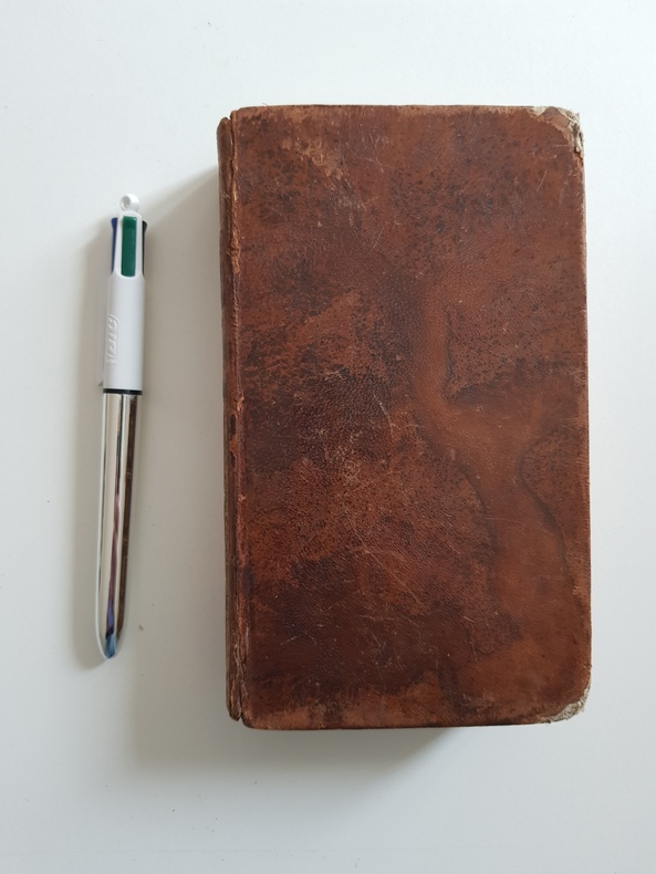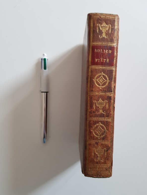 Paris, De Meyer/ Lyon Périsse Frères, 1834. "10 x 18, viii-461 pages, reliure d'époque plein cuir, dos lisse richement décoré, tranches jaspées, état moyen (reliure abîmée mais solide; peu de rousseurs)."