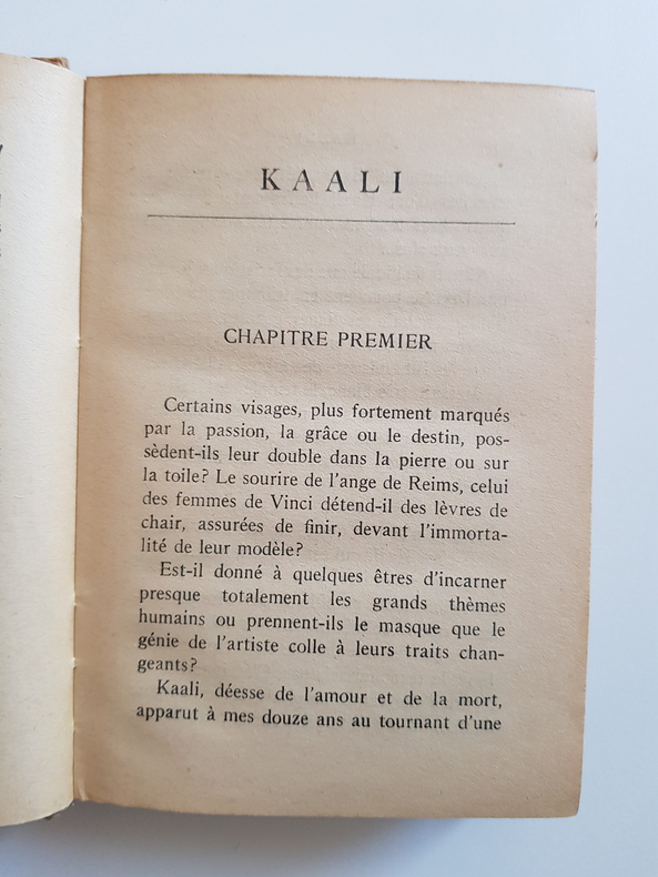 Titre : Kaali - Déesse de l'amour et de la mort Auteur : Sandy Isabelle Éditeur : Éditions Cosmopolites Lieu : Paris Date : s.d. (circa 1930) Collection : Collection du Lecteur - 95 Reliure : Demi-toile beige de l'éditeur à coins, plats papier marbré rouge et beige, dos lisse. Sans jaquette. État : Bon état d'usage - frottements aux coiffes et aux coins, fine griffe oblique sur le premier plat, petites épidermures au papier marbré, mors solides. Intérieur propre, papier uniformément jauni, rousseurs éparses. Pas d'annotations repérées. Langue : Français Description : Roman d'Isabelle Sandy dans la Collection du Lecteur, n°95. Page de titre encadrée typographiquement, devise « Je bénis la Paix » (Pie X). Note biographique sur l'autrice en ouverture. Adresse de l'éditeur : 151 bis, rue Saint-Jacques, Paris V. Mention de copyright en fin : Éditions Eras.