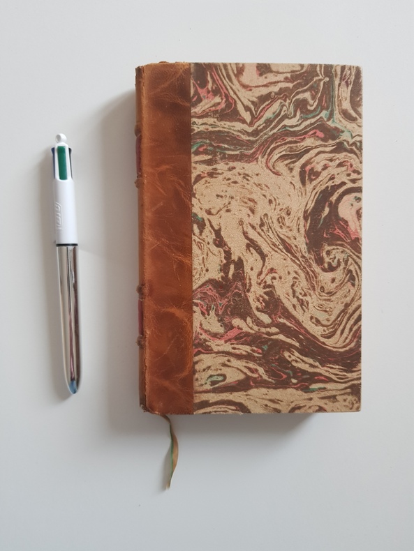 Titre : Le raisin vert Auteur : Ratel Simonne Éditeur : Librairie Plon - Les Petits-Fils de Plon et Nourrit Lieu d'édition : Paris, 8 rue Garancière Date : 1946 - nouveau tirage d'après l'édition originale de 1935 Reliure : Dos de basane fauve, pièces de titre rouges dorées, filets, plats papier marbré multicolore, signet tissu Etat du livre : Bon état - cuir patiné, frottements d'usage aux mors et aux coiffes, petit manque en pied de dos, coins émoussés, intérieur propre au papier jauni, rares rousseurs, reliure solide Jaquette : Sans jaquette (éditeur) Format : in-12 env. - 18 x 12 cm Langue : Français Particularités : Mention en page de titre « Isabelle Comtat » - dispositif de publication au verso précisant Dépôt légal 1935, Mise en vente 1935, Numéro de publication 6531, Numéro d'impression 3451, Nouveau tirage 1946 - Copyright 1935 Librairie Plon Description : Bel exemplaire ancien du roman de Simonne Ratel, en reliure d'époque à dos de basane avec pièces de titre rouges et beaux plats marbrés. Exemplaire propre, bien relié, au papier uniformément bruni.
