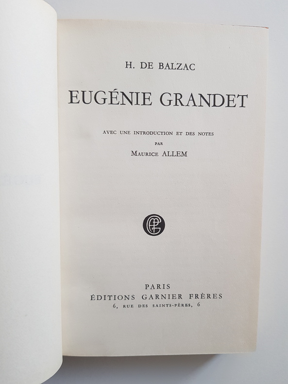 Titre : Eugénie Grandet Auteur : Balzac Honoré de Éditeur : Éditions Garnier Frères Lieu d'édition : Paris Date d'édition : 1955 Collection : avec une introduction et des notes par Maurice Allem Langue : français Reliure : demi-chagrin fauve, dos à nerfs orné de filets et fleurons dorés et noirs, titre en capitales, plats papier marbré Format : env. 19 x 12 cm État du livre : bon état - légères frottures d'usage aux coiffes et aux mors, coins un peu émoussés, intérieur propre et frais, sans annotation ni soulignement, papier bien conservé Particularités : achevé d'imprimer sur Supralfa Cellunaf par l'Imprimerie André Tardy à Bourges le 25 juillet 1955 ; numéro d'édition 454 ; dépôt légal 3e trim. 1955 Description : Élégante édition Garnier Frères d'Eugénie Grandet en demi-reliure de qualité, dos décoré. Texte précédé d'une introduction et accompagné de notes par Maurice Allem. Exemplaire solide et propre, idéal pour la lecture et la collection.
