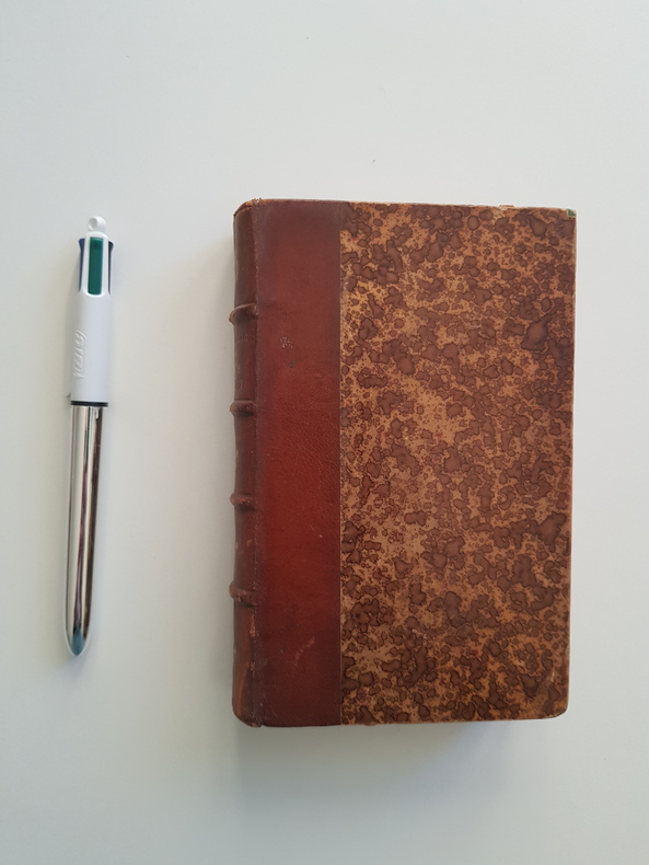 Titre : Ursule Mirouët Auteur : Balzac Honoré de Éditeur : Librairie nouvelle Lieu d'édition : Paris Date d'édition : 1857 Collection : La Comédie humaine - Scènes de la vie de province (Oeuvres complètes) Langue : français Reliure : demi-basane brune de l'époque, dos lisse orné de filets et titre dorés, plats papier marbré Format : env. 18 x 12 cm État du livre : bon état d'usage - plats et coins frottés, coiffes usées, petites épidermures au dos, mors solides. Intérieur bruni avec rousseurs éparses et quelques taches, premier cahier un peu lâche aux charnières mais l'ensemble reste bien tenu. Pas de jaquette (comme d'usage). Particularités : page de titre datée 1857 ; mention d'impression au verso du faux-titre (Imp. de la Librairie Nouvelle - A. Delamare, 15, rue Breda). Édition du XIXe siècle dans la série des Oeuvres complètes. Description : Exemplaire ancien d'Ursule Mirouët, roman de la Comédie humaine situé dans les Scènes de la vie de province. Reliure d'époque en demi-cuir au dos titré or, typique des cartonnages privés du XIXe siècle. Usure cohérente avec l'âge, intérieur complet sans manque apparent, papier uniformément jauni avec rousseurs. Bon exemplaire de lecture et de collection.