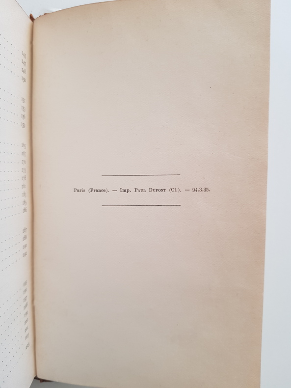 Titre : Poésies choisies Auteur : Desbordes-Valmore Marceline Éditeur : Librairie Garnier Frères Lieu : Paris Année : 1935 Collection : Garnier Reliure : Demi-basane brune, dos à nerfs orné de filets et fers dorés, plats papier marbré, signet de soie jaune Format : In-12 env. 18 x 12 cm Etat : Bon - dos patiné avec frottements d'usage, coiffes et mors légèrement usés, fines épidermures, protège-dos plastique ancien, ex-dédicace manuscrite au faux-titre datée Noël 1944, papier uniformément jauni avec quelques rousseurs éparses Description : Édition Garnier des poèmes de Marceline Desbordes-Valmore, établie avec une introduction et des notes par Maurice Allem. Achevé d'imprimer indiqué en fin de volume : Paris, Imp. Paul Dupont, 24-3-35. Bel exemplaire relié, solide et décoratif Contenu : Poésies choisies avec introduction et notes de Maurice Allem Langue : Français