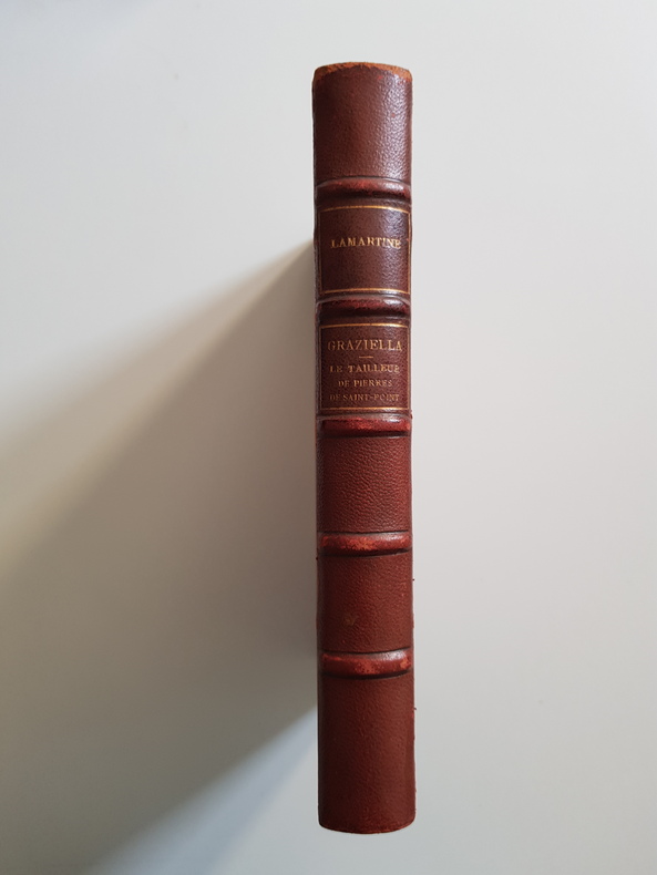 Paris, Furne, Jouvet & Cie. et Hachette & Cie. sans date, vers 1836, 280x200mm, 124pages, reliure demi-percaline à coins avec titre, auteur, filets et fleurons dorés au dos à quatre faux-nerfs. Trois filets dorés sur les plats. Plat et garde papier fantaisie. Tranches marbrés. Nom du possesseur sur le haut de la page de faux-titre, autrement bon état.