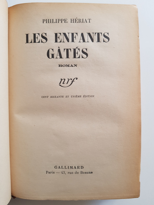 1958 1958. 5 PHILIPPE HERIAT - LES ENFANTS GATES (LES BOUSSARDEL 11) / Gallimard 1958