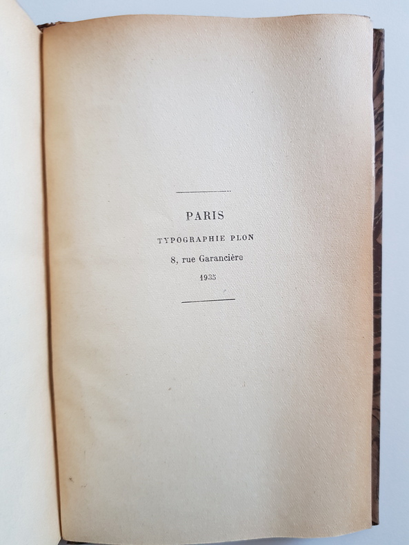 Titre : Mon oncle et mon curé Auteur : de La Brète Jean Éditeur : Librairie Plon - Les Petits-Fils de Plon et Nourrit, imprimeurs-éditeurs Lieu : Paris Date : 1925 Édition : Tirage postérieur à l’édition originale de 1889 - mention « 264e édition » au catalogue de l’éditeur Reliure : Demi-basane marron à dos lisse orné de filets et fleurons dorés, pièce de titre noire, plats de papier marbré Format : In-16 - env. 16,5 x 10,5 cm Langue : Français État : Bon état d’usage - coiffes frottées avec petit manque en tête, mors et coins légèrement frottés, papier uniformément jauni avec quelques rousseurs éparses ; intérieur propre, reliure solide Description : Roman couronné par l’Académie française (prix Montyon). Achevé d’imprimer à la Typographie Plon, 8, rue Garancière. Exemplaire bien conservé dans une élégante reliure ancienne.