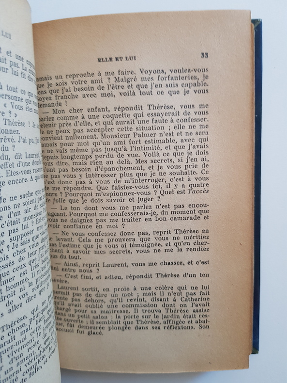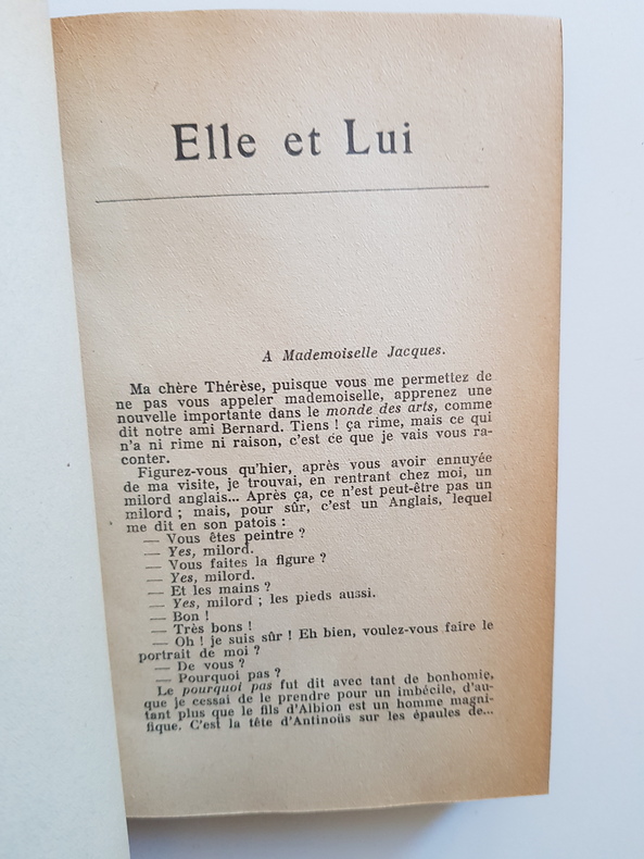 Paris Hachette, Charpentier 1860-1862 1 in douze reliure bien usagée, dos décollé, 311 pp, 238 pp, Relié à la suite : Lui et Elle de P.de Musset (cachet de bibliothèque sur la page de titre ) en édition originale ( pour "Lui et Elle "par Paul de Musset chez Charpentier en 1862,le texte de G.Sand est en seconde édition ,parue un an après l'originale ( 1859)