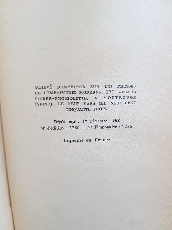 Gallimard. 1953. In-12. Broché. Etat d'usage, Couv. légèrement passée, Dos à nerfs, Non coupé. 150 pages. Papier jauni.. . . . Classification Dewey : 846-Lettres, correspondance littéraire