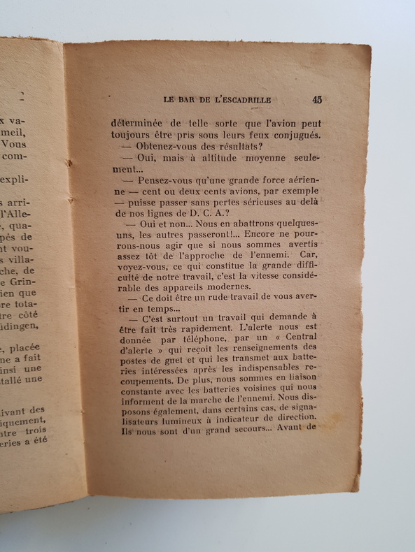 « Ce livre n’est pas un roman. Il n’est pas l’histoire d’un homme, de plusieurs hommes. Il est l’histoire des hommes de l’aviation, des hommes de la guerre, cette guerre 1939-1940… » — Roland Tessier fut rédacteur de la revue « Les Ondes » et chef du service de presse de « Radio Paris » pendant la période de l'Occupation. — "Avant-propos. Ce livre n'est pas un roman. Il n'est pas l'histoire d'un homme, de plusieurs hommes. Il est l'histoire des hommes de l'aviation, des hommes de la guerre, cette guerre 1939-1940. J'ai réuni en ces pages des croquis de ce que furent leurs vols, leurs joies, leurs peines, leurs victoires, leurs deuils. Je n'ai pas cherché à lier entre eux – et surtout pas par une pauvre histoire sentimentale ! – ces croquis. À quoi bon ? N'était-il pas plus vrai, plus humain, plus sincère, de saisir au passage, avec simplicité, netteté, vivacité, les périodes de leur vie de combattants de l'air ? Pas même n'ai-je voulu prendre un personnage principal. Je les ai pris, eux, c'est tout. Eux de la grande famille de l'air. Et j'ai écrit comme ils parlent, simplement, sans phrases, sans mots, sans vouloir – je m'en défends bien – fleurir une littérature que j'estime devoir être, avant tout, celle du reporter. On a beaucoup critiqué l'aviation après notre lamentable défaite. On a dit et on a écrit que l'aviation militaire française n'avait pas fait son devoir. C'est faux. Nos pilotes, nos équipages, nos mécanos ont accompli leur devoir, et souvent même plus que leur devoir Ils ont montré le plus pur esprit de sacrifice, d'abnégation Ils ont témoigné du plus grand courage. Ce n'est pas leur faute, à eux, si pour cette guerre de 1939-1940 on a mis à leur disposition des moyens et des matériels très réduits, tant en quantité qu'en qualité. Ce n'est pas leur faute si des politiciens sans scrupule les ont lancés dans un ciel qui ne pouvait que leur être fatal. Car le courage de l'homme ne peut suffire à tout. Il faut qu'il soit servi, dans une guerre moderne, par un matériel impeccable. Que peut-on reprocher à un pilote restant au sol faute d'avoir un avion à sa disposition ? Les Français doivent comprendre que l'arme qui eut dû être la plus puissante : l'aviation, était peut-être en réalité la moins forte. J'ai écrit la première partie de ce livre (début septembre 1939 à fin avril 1940) durant les premiers mois de la guerre. Cette première partie devait, à elle seule, constituer un volume. Le manuscrit en avait été déposé aux Editions Baudinière dans les premiers, jours de mai. Ce livre n'a pu paraître. On se doute pourquoi... Je l'avais un peu oublié. Mais j'ai entendu que des gens s'attaquaient non pas aux dirigeants responsables de notre aviation, mais à nos pilotes et à nos équipages martyrs. Et j'ai crié : halte ! J'ai ressorti mon livre. J'ai relu mon manuscrit. Mais je n'ai rien changé au texte. Tout simplement, dans cette première partie, ai-je remis à leur place les paragraphes et les phrases que la censure française avait cru devoir supprimer en avril 1940. Car d'après cette censure s'exerçant dans des bureaux bien chauffés, notre armée de l'air ne manquait de rien, nos pilotes remportaient force victoires sans subir jamais aucune défaite ! Mauvaise plaisanterie... Et j'ai ajouté une seconde partie. La plus courte, mais la plus tragique... Elle va du 10 mai à l'armistice. Elle montre ce que fut la lutte des deux aviations ennemies, elle dit pourquoi l'aviation française fut si malmenée, elle explique aux combattants du sol la raison pour laquelle ils furent si rarement survolés par les ailes françaises. Il faudra comprendre. Je l'ai dit et je le répète : les pilotes et les équipages ont fait leur devoir, ont tiré le maximum des matériels mis à leur disposition. Les responsables de notre aviation – qu'ils soient ministres ou autre chose, cela est sans importance – n'ont fait que des erreurs, que des bêtises... que de la politique ! Qu'ajouterais-je ? Je pourrais, certes, durant des pages et des pages, regretter et critiquer les dirigeants qui négligèrent de donner à la France une aviation digne d'elle. Je pourrais encore louer le personnel navigant, mettre en lumière, dans cet avant-propos, son courage et sa ténacité. Mais à quoi bon ? Mieux vaut, dès maintenant, laisser parler nos hommes de l'air. Le lecteur, quand il refermera ce livre, aura compris quels furent les espoirs déçus, l'impuissance, le crève-cœur, les douleurs de l'aviation française. Espérons que les Français sauront se souvenir de ceux qui sabotèrent leurs ailes. Et ce volume que j'ai écrit à la gloire de mes camarades de l'air, je, veux, simplement, le déposer sur l'Autel de l'aviation, modeste gage de reconnaissance et d'adieu à ceux qui ne sont plus, à ceux-là même qui payèrent de leur sang les errements et l'insouciance des dirigeants qui, sans, que nous y fussions préparés, nous jetèrent dans la guerre." (R. T., février 1941)