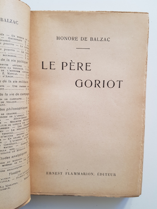 La maison Vauquer est une pension parisienne où se côtoient des résidents que tout oppose, et pourtant inexorablement liés : Rastignac, un jeune étudiant en droit, le Père Goriot, un ancien fabriquant de vermicelles, ou encore le mystérieux Vautrin. Tous ont leurs secrets et leurs faiblesses : Rastignac, obsédé par la haute société, délaisse ses études pour tenter de s’y intégrer ; Vautrin cache un passé douloureux ; le Père Goriot s’est ruiné pour ses filles ingrates. Jolie reliure, demi cuir, 18x12cm, très bel état intérieur, 255pp. Couvertures illustrée avec dos conservées. Librairie Grund, 1935 ref/273