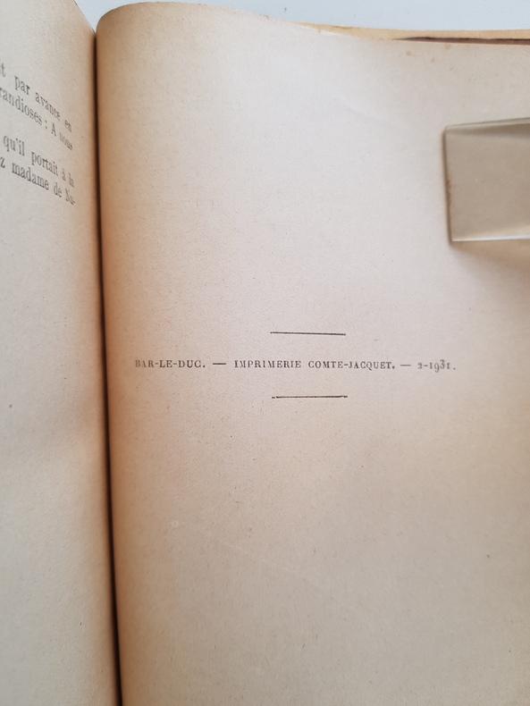 Titre : Le Père Goriot Auteur : Balzac Honoré de Éditeur : Ernest Flammarion, Éditeur Lieu de publication : Paris Date de publication : 1931 Impression : Bar-le-Duc, Imprimerie Comte-Jacquet, 2-1931 Langue : Français Format : Broché (in-12) Description : Édition Flammarion de 1931 du chef-d'œuvre de Balzac, Le Père Goriot, l'un des romans les plus célèbres de la Comédie humaine. Exemplaire imprimé à Bar-le-Duc par l'Imprimerie Comte-Jacquet en février 1931. Couverture typique beige encadrée de rouge. Exemplaire conservé dans une reliure cartonnée à effet marbré avec étiquette manuscrite au dos. Une édition emblématique du roman fondateur du réalisme français. État du livre : Bon état d'ensemble, papier uniformément jauni, petite fente en marge supérieure sur une page. Intérieur propre et complet.