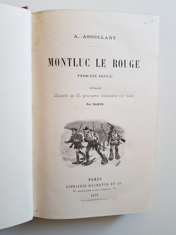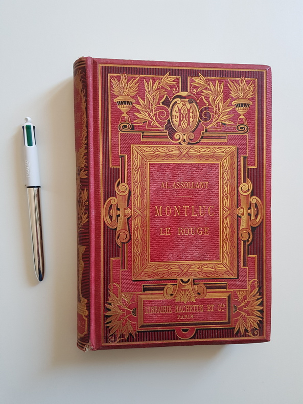 Titre : Montluc le Rouge. Première partie Auteur : Assollant Alfred Lieu d’édition : Paris Éditeur : Librairie Hachette et Cie Date d’édition : 1878 Langue : Français Format : in-8 Reliure : Cartonnage éditeur en percaline rouge, riche décor doré et noir, dos orné État du livre : Bon état d’usage - dorure bien présente, coins et coiffes légèrement émoussés, dos un peu frotté, rousseurs éparses ; intérieur solide Particularités : Première partie seule ; illustré de 63 gravures dessinées sur bois par Sahib ; belle reliure éditeur à plaque ornementale Exemplaire 1682