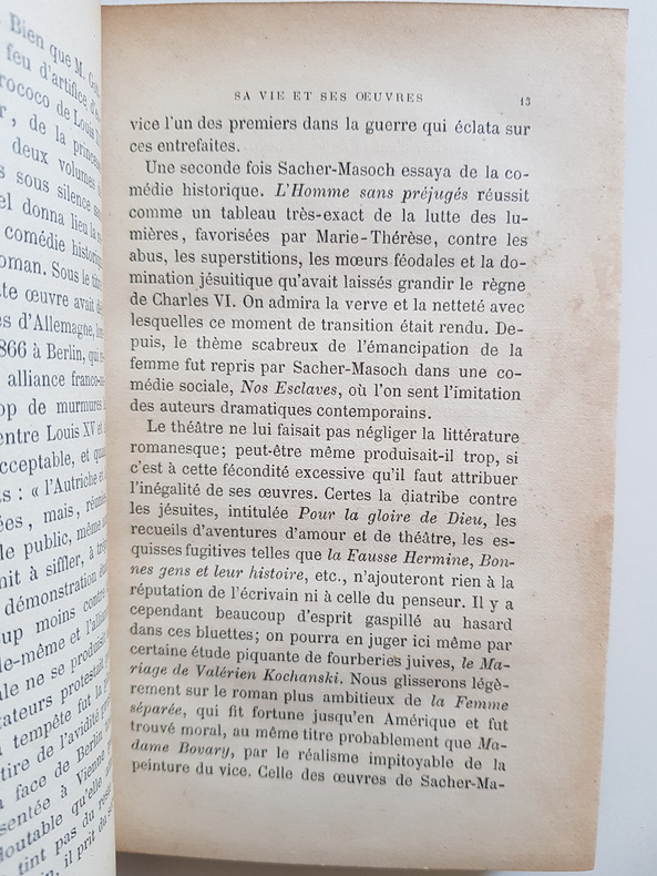 Première édition française. Précédé d'une introduction non signée : Sacher-Masoch, sa vie et ses oeuvres.