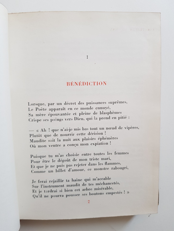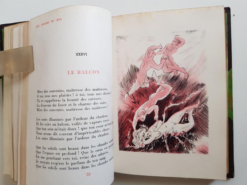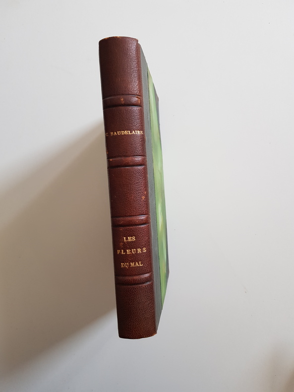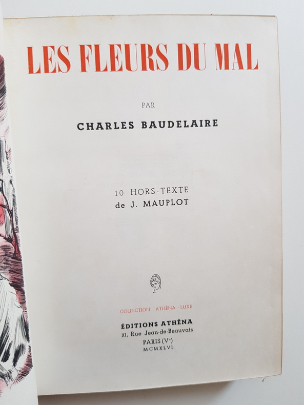 Titre : Les Fleurs du mal Auteur : Baudelaire Charles Éditeur : Éditions Athéna Lieu d'édition : Paris Date d'édition : 1946 Édition : Collection Athéna - Luxe ; tirage limité à 2000 exemplaires numérotés, exemplaire n° 913 ; 10 hors‑texte de J. Mauplot Langue : français Reliure : demi‑chagrin brun à coins, dos à nerfs avec titre doré, plats recouverts de papier marbré vert laqué, tête teintée, signet Contenu : Texte intégral des poèmes, frontispice et 9 autres hors‑texte en couleurs ou bichromie par J. Mauplot ; fac‑similés de la page de titre de 1857 et de la dédicace à Théophile Gautier État : bon exemplaire ; dos et coins légèrement frottés, mors solides ; papier propre avec discrètes rousseurs en début et fin de volume, planches très fraîches