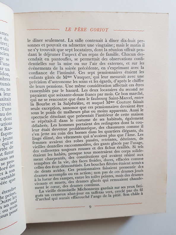La maison Vauquer est une pension parisienne où se côtoient des résidents que tout oppose, et pourtant inexorablement liés : Rastignac, un jeune étudiant en droit, le Père Goriot, un ancien fabriquant de vermicelles, ou encore le mystérieux Vautrin. Tous ont leurs secrets et leurs faiblesses : Rastignac, obsédé par la haute société, délaisse ses études pour tenter de s’y intégrer ; Vautrin cache un passé douloureux ; le Père Goriot s’est ruiné pour ses filles ingrates. Jolie reliure, demi cuir, 18x12cm, très bel état intérieur, 255pp. Couvertures illustrée avec dos conservées. Librairie Grund, 1935 ref/273