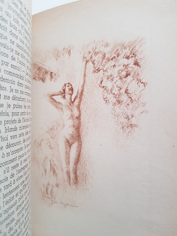 Tirage à 520 exemplaires. Un 60 exemplaires sur grand Japon impérial contenant 3 états des illustrations et la reproduction d'un croquis. N° 45, deuxième papier après 15 Japon impérial (comprenant 4 états des illustrations, un croquis original et la reproduction de 3 croquis). 4 belles illustrations à la mine de plomb rehaussées en couleurs en hors-texte dont 1 frontispice et illustrations dans le texte. Très bel exemplaire, en parfait état."Pierre Louÿs a fermé les yeux depuis quatre ans déjà lorsque léditeur Ferroud décide de mettre sous presse une nouvelle édition de cette « Volupté nouvelle », publiée la première fois par Borrel en 1899. Et il a bien raison !Dans ce petit conte fantastique (une cinquantaine de pages), le narrateur, un oisif nonchalant vit une rencontre surnaturelle : la nymphe Callistô, surgissant par une belle nuit de son antiquité vient lui rendre visite ! Elle est curieuse de voir ce quest devenu le monde plus de 2000 ans après sa mort et livre ses réflexions sur ce monde qui, selon elle, na pas réussi à surpasser le savoir-vivre, les sciences, les arts de son époque. Callistô a soif de découvrir et notre narrateur a soifdelle. Dune beauté indépassable, nue, brillante dans la nuit, nous pouvons tout à fait le comprendre ! Et le pauvre ne peut opposer aucune répartie sensée aux réflexions de la nymphe. A la fin, un très beau morceau de choix : la volupté nouvelleCest la cigarette : « cette inepte habitude qui consiste à semplir la bouche avec de la fumée de feuilles » !Une belle satire de la fin du XIX° siècle sous la plume de lun de ses plus brillants auteurs.Pour les illustrations, Ferroud en confie la réalisation à Jeanne Bardey (1872-1954), artiste Lyonnaise, élève de Rodin depuis 1909 (elle fut sa maîtresse à des périodes différentes de sa vie), amie dÉdouard Herriot. Jeanne Bardey travaille beaucoup, et réalise dessins, gravures, sculptures. Parfois elle dessine plus de 40 planches par jour. Elle jouit dune belle reconnaissance auprès du public, même si certaines de ses uvres sont décriées. Quelques esprits chagrins décrivant ses productions comme étant celles dune « aliénée »Elle est subjuguée par lhistoire de la Grèce et de lÉgypte, y séjourne souvent en compagnie dHerriot et son travail en porte linfluence. En 1928, elle réalise par exemple une série de masques inspirés de lantiquité qui sont exposés à la galerie Druet. Cest à ce moment quelle dessine au crayon les ornements et figures de lédition Ferroud dune « volupté nouvelle ».Très clairement de style « égyptien », les illustrations de louvrage sont dune ligne claire, moderne, parfois naïve et se marie remarquablement avec le texte facétieux du Grand Pierre !Après la seconde guerre mondiale, Jeanne réside tous les hivers en Égypte où elle et sa fille (qui fut modèle pour Rodin) sont les assistantes dAlexandre Varille, égyptologue de renom. Elle meurt dans sa ville natale, Lyon, en 1954.". Photos sur demande.