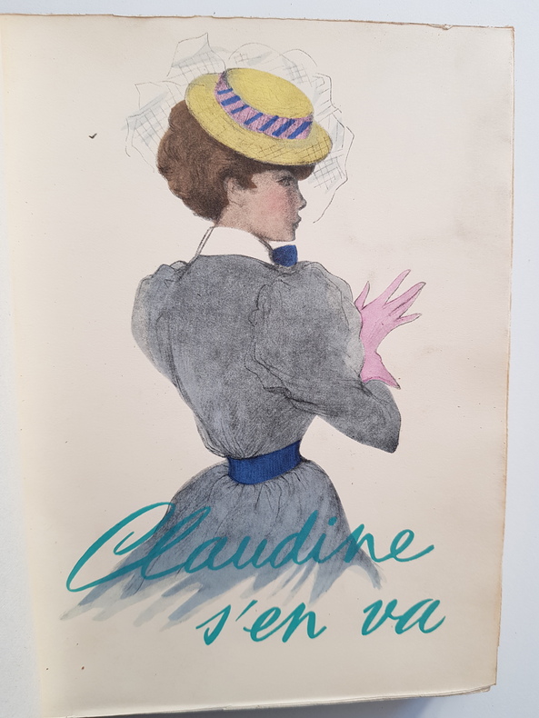ÉDITIONS ORIGINALES sur papier dédition des "Claudine" écrite par Colette mais signée par son mari Willy. En 1893, la jeune Colette épouse lécrivain et critique musical Henri Gauthier-Villars, dit « Willy » . Il est connu pour avoir pas mal de nègres, et lorsquil découvre les talents littéraires de sa femme, il lui demande décrire ses souvenirs dadolescence qui deviendront bientôt les Claudine. Colette en parle ainsi: « Il y a des années que jai pris un tas de notes en journal, et je naurais jamais osé croire que ce fût lisible. Mais, grâce à Belle-Doucette (Willy), qui a élagué et atténué des crudités par trop claudinières, Claudine est devenue acceptable. » Et pourtant, les romans sont un véritable succès lors de leur parution mais Colette ne tire aucun profit financier de cette série qui lance sa carrière littéraire car Willy a vendu les droits à ses éditeurs, sans même prévenir Colette. Elle finit par saffranchir de cette tutelle, e; 1903 elle écrit Claudine sen va (1903) et s'en va avec son héroïne, elle divorce de Willy, Superbe exemplaire de la collection des "Claudine".