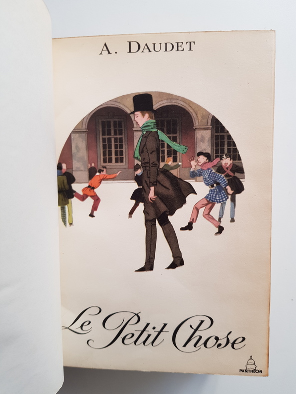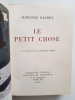 Le Petit Chose est un roman autobiographique écrit à la première personne du singulier et publié par Alphonse Daudet en 1868. Le personnage central de l'histoire est Daniel Eyssette, jeune garçon rêveur qui grandit dans le Sud de la France avec son frère Jacques au milieu d'une famille aisée. Celle-ci va pourtant tomber dans la misère à la suite de la faillite de l'entreprise familiale. Ce qui force Daniel à partir avec sa famille en exil à Lyon. Il y entre dans un collège, où un professeur l'appelle « le petit Chose » en raison de sa petite taille, surnom que le narrateur réutilisera dans toute la suite du roman. Tirage numéroté 4259/500 vol. broché,180x130, 366pp ,couvertures rempliées, très bel exemplaire Edition Palatine Genève 1943 ref/31