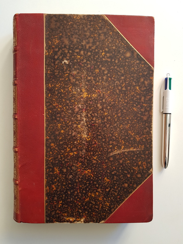 Furne, libraire-éditeur Oeuvres de Walter Scott Relié 1830 Deux volumes in-8 (14 x 22 cm), relié, demi-basane verte, dos long orné de filets et de fers dorés, 425 pages pour le premier tome et 446 pages pour le second, traduction de M. Defauconpret, avec des éclaircissements et des notes historiques, tome XVII et XVIII des oeuvres de Walter Scott ; couvertures frottées, plats un peu blanchis, petits manques papiers sur les coupes et les chasses, dos insolés, quelques taches et rousseurs, pages de deux cahiers du deuxième volume brunies, assez bon état. Livraison a domicile (La Poste) ou en Mondial Relay sur simple demande.