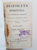 Titre : Dialogues spirituels, où la perfection chrétienne est expliquée pour toutes sortes de personnes Auteur : Surin Jean-Joseph Éditeur : Fr. Seguin, imprimeur-libraire Lieu d'édition : Avignon Date d'édition : 1821 Édition : Nouvelle édition Volumes : 2 tomes, complet Langue : français Format : in-12 env. 18 x 11 cm Reliure : Plein veau d'époque, dos lisses ornés de fleurons et filets dorés, pièces de titre noires Provenance : Maison d'exercices spirituels Notre-Dame du Mirail, Toulouse – tampons violets répétés, ancienne cote manuscrite État du livre : Exemplaires solidement reliés mais bien frottés, coins émoussés, coiffes usées, pièces de titre craquelées avec pertes de dorure, petites taches et rousseurs éparses, quelques marques d'usage et de bibliothèque religieuse Description : Ensemble complet des deux volumes de ce classique de spiritualité jésuite. Ouvrage présenté sous forme de dialogues expliquant les principaux points de la perfection chrétienne et la direction spirituelle pour toutes sortes de personnes. Le texte traite notamment de la lutte contre les vices, de l'oraison, des examens de conscience et de l'imitation des saints. Joli tirage avignonnais chez Fr. Seguin, 1821.