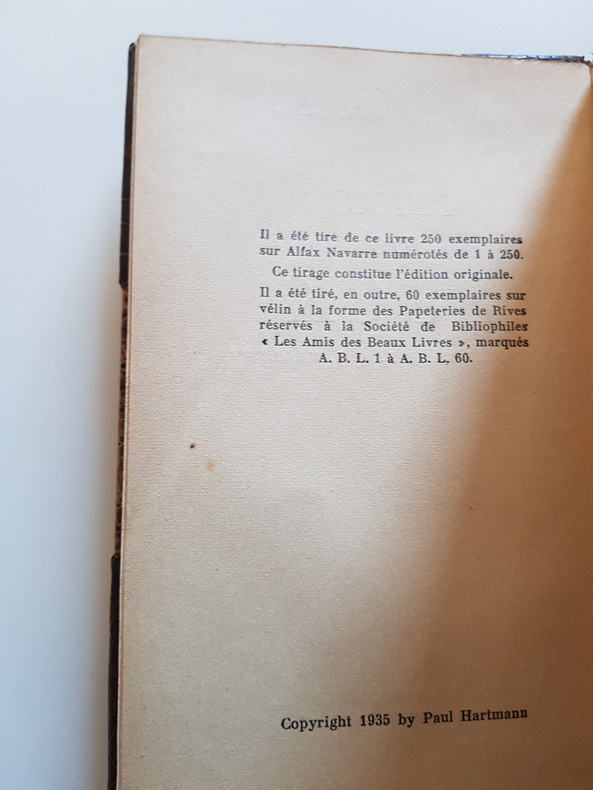 Paris PAUL HARTMANN 1935 un volume in-12°, 330 pp. Reliure en demi-basane à coins rouge, dos à nerfs orné (reliure moderne). (dos éclairci).