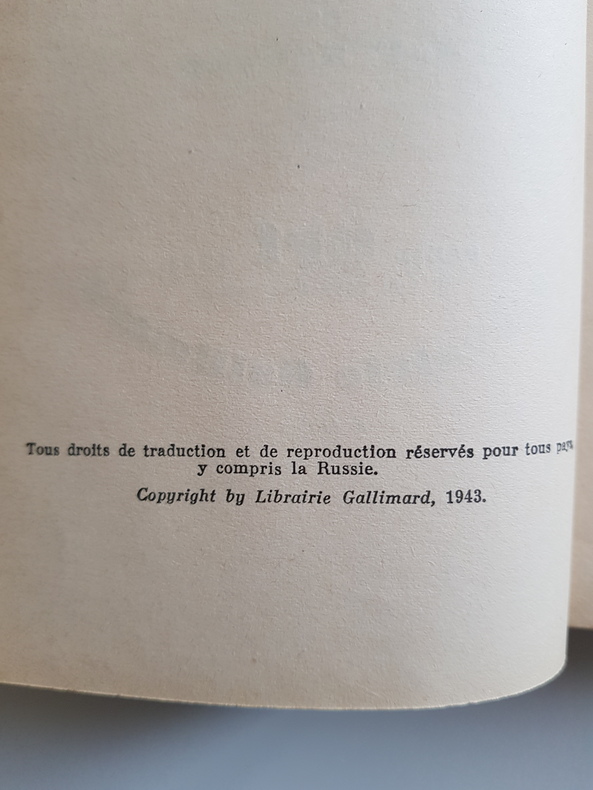 Paris, nrf, Librairie Gallimard, 1943. 8vo. Orig. printed wrappers, uncut and first quire unopened. Light traces of use, but overall remarkably fresh. Spine very slightly darkened and wrappers with very light scattered brownspotting. A small, vague couloured thump bark to lower corner of front wrapper (and first leaves). An unusually good copy, as the fragile wrappers are often much more worn. Also internally unusually fresh. Wrappers printed in red and blue. With half-title. 722, (2) pp, 2ff. (one with colophon).