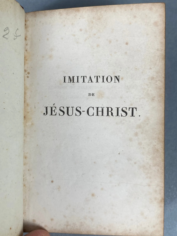 KEMPIS (Thomas à) - Imitation de Jésus-Christ. Paris, Chez Louis Janet, 1825 ., in-12, VIII-517 pp., reliures plein maroquin rouge, dos lisses ornés, tranches dorées, dentelle intérieure, larges filets sur les plats. Les 2 volumes. Avec un frontispice.
