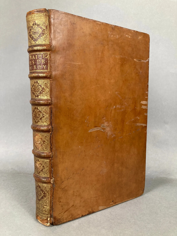 DUPUY (P.) - Traitez touchant les droits du roy très-chrétien sur plusieurs estats et seigneuries possédés par divers princes voisins Et pour prouver qu'il tient à juste titre plusieurs provinces contestées par les princes estrangers. Recherchés pour montrer que plusieurs provinces & villes du royaume sont du domaine du roy. Usurpations faites sur les trois eveschez Mets, Toul & Verdun : & quelques autres traitez concernant des matères publiques. Le tout composé & recueilly du trésor des chartes du roy & autres mémoires. Rouen, Laurens Maurry, 1670 ., in-folio, table + 675 pp. Reliure plein veau, dos ornés à 6 nerfs, tranches jaspées. Recueil de pièces et documents originaux publiés à l'instigation du cardinal Richelieu. L'auteur vit particulièrement les états d'Italie, d'Espagne, la Flandre, l'Artois, Avignon, la Bourgogne, etc. Bel état. Bourgeois et André N° 2779.