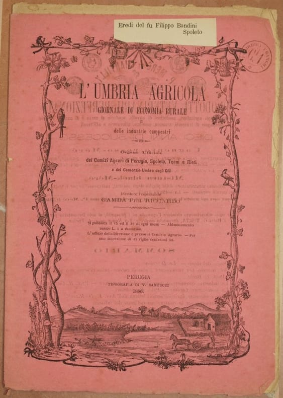 In 4. Dim. 27x19 cm. Pp. da 129 a 144. Numero del 15 e 30 settembre 1886 de "L'Umbria agricola", rivista bisettimanale di economia rurale diretta da Riccardo Gamba. La rivista conteneva numerosi articoli di agricoltura e allevamento, molti di interesse locale. In questo numero: La filossera, La prossima fiera dei vini italiani, Congresso degli olii, Il commercio delle uve colla Svizzera, Orti e campi sperimentali, La produzione dei cereali, Contro la peronospora viticola, Per il catasto, Campagne e raccolti, Uve da tavola, Frutticoltura, Circolo Agrario dell'alta Valle del Tevere in Città di Castello, Coltura del grano, Conferenze a Firenze, Tariffa ferroviaria degli olii, Vizi redibitori ecc... Etichetta al piatto anteriore. In buone condizioni. Brossura editoriale assente. Piegatura orizzontale. Legatura assente. Pagine in buone condizioni con rare fioriture. Piegature e strappi marginali. Number of the 15th and 30rd of september 1886 of "L'Umbria agricola", biweekly magazine of rural economy directed by Riccardo Gamba. The magazine contained different articles of agriculture and breeding, many of them of local interest. In this number: filossera, Next fair of italian wines, Congress of oils, Trade of grapes with Switzerland, Experimental fields, Production of cereals, Against winea peronospora, Countryard and harvests, Grapes, Cultivation of fruit, Circolo Agrario of High Valle del Tevere in Città di Castello, Conferences in Florence, Railway fee of oils etc... Label in the front plate In good conditions. Editorial cover in good general conditions slightly worn in the edges and spine. Horizontal folding. Binding is missing. Pages are in good conditions with foxings. Foldings, tears and wearings in the edges.