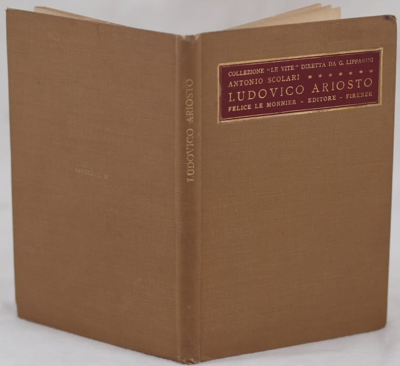 In 8. Dim. 21x14 cm. Pp. (10)+162+(2). Edizione del 1930 della collana "Le vite" diretta da G. Lipparini sulla biografia del poeta e commediografo italiano Lodovico Ariosto (1474-1533) scritta da Antonio Scolari. All'interno sono presenti 4 planches fotografiche fuori testo. In discrete condizioni. Copertina in tela editoriale in buone condizioni generali con lievi usure ai margini e dorso. Legatura in discrete condizioni con lievi rotture. All'interno le pagine si presentano in ottime condizioni con rare fioriture. Edition of 1930 of the series "Le vite" directed by G. Lipparini about the italian poet and playwriter Lodovico Ariosto (1474-1533) written by Antonio Scolari. Inside there are 4 out of the text photographic planches. In fair conditions. Full cloth editorial cover in good general conditions slightly worn in the edges and spine. Binding in fair conditions with slight cracks. Inside pages are in very good conditions with occasional foxings.