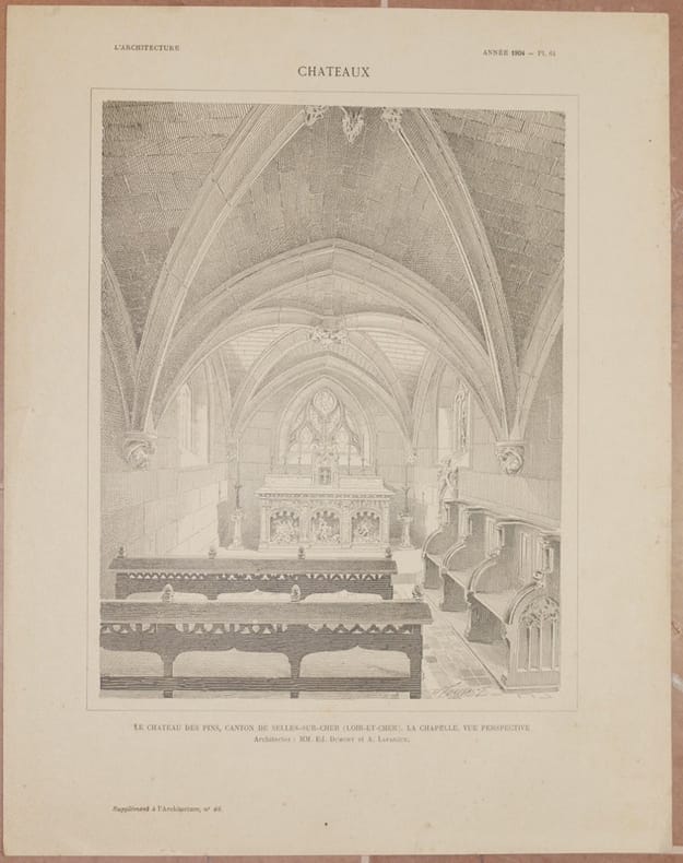 Bella litografia di architettura supplemento de "L'architecture" del 1904. La stampa mostra la cappella del Castello des Pins a Selles sur Cher (Loir et Cher). TECNICA: Litografia DIMENSIONI FOGLIO: cm 35X27,5 DIMENSIONI INCISIONE: cm 25,5x20 EPOCA: 1904 CONDIZIONI: Buone condizioni. Fioriture e strappi marginali Beautiful lythography of 1904 taken from the work "L'architecture" of 1904. The print represents the chapel of Castle des Pins Canton de selles sur Cher (Loir et Cher). TECHNIQUE: Lythography PAGE SIZE: cm 35x27,5 PRINT'S SIZE: cm 25,5x20 PERIOD: 1904 CONDITION: good conditions. Foxings