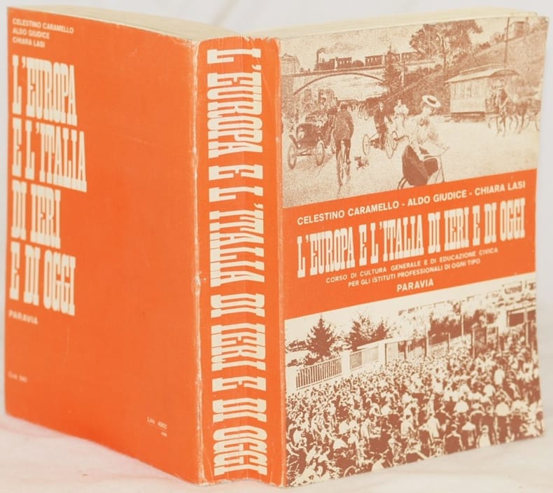 In 8. Dim. 24x17,5 cm. Pp. V+1131.Edizione del 1974 di questo manuale di educazione civica scritto da Celestino Caramello, Aldo Giudice e Chiara Lasi ad uso degli istituti professionali. All'interno: Storia civile 1800-1848, Note di educazione civica, Prosatori e poeti italiani e stranieri dalla prima metà dell'Ottocento, Storia civile 1848-1870, Fermenti sociali in Europa, Note di educazione civica, Invenzioni e progresso tecnico, Storia civile 1870-1900, scoperte e invenzioni (1870-1900), La musica nel XIX secolo, Lo sport, Esplorazioni e scoperte, Storia civile 1900-1914, La prima guerra mondiale, La crisi del dopoguerra in Eruopa, storia civile tra le due guerre, Poeti e prosatori del novecento, La seconda guerra mondiale, Il secondo dopoguerra, Scoperte e invenzioni (1900-1968), Sport, La musica tra l'ottocento e il novecento il cinema ecc... Alcune planches fotografiche. In buone condizioni. Copertina editoriale in buone condizioni generali con lievi usure ai margini e dorso. Legatura in buone condizioni. All'interno le pagine si presentano in ottime condizioni con rare fioriture. Alcune piegature agli angoli. Edition of 1974 of this manual of civic education written by Celestino Caramello, Aldo Giudice and Chiara Lasi for the usage of technical schools. Inside: Civil history 1800-1848, Notes of civical education, Italian and stranger poet and prose writers of the first half of XIX century, Civil history 1848-1870, Social movements in Europe, Notes of civic education, Inventions and technical progress, Civil history 1870-1900, discoveries and inventions (1870-1900), Music during XIX century, sport, Explorations and discoveries, Civil history 1900-1914, First world war, Crisis of after war in Europe, civil history between the two wars, Poetry and prose writers of XX century, Second world war, period after second world war, Discoveries and inventions (1900-1968), Sport, Music between 1800 and 1900 the cinema ecc... Some photographic planches. In good conditions. Editorial cover in good general conditions slightly worn in the edges and spine. Binding in good conditions. Inside pages are in very good conditions with occasional foxings. Some foldings in the corners.