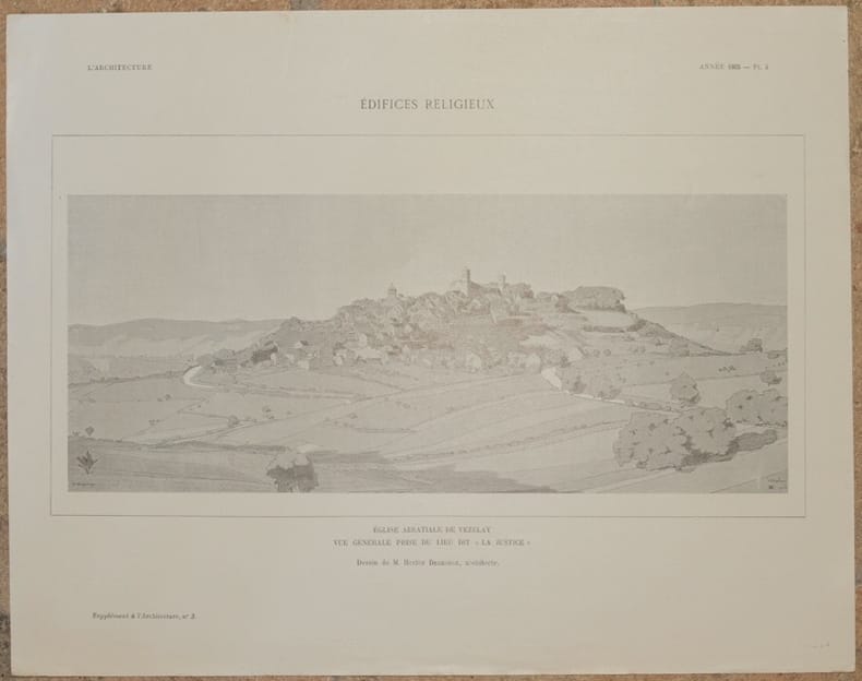 Bella litografia di architettura supplemento de "L'architecture" del 1905. La stampa mostra una veduta dell'Abbazia di Vezelay da "La justice".TECNICA: Litografia DIMENSIONI FOGLIO: cm 27,5x35 DIMENSIONI INCISIONE: cm 16x31 EPOCA: 1905 CONDIZIONI: Buone condizioni. Fioriture e strappi marginali Beautiful lythography of 1905 taken from the work "L'architecture" of 1905. The print shows a view of Vezelay Abbey taken from "La justice". TECHNIQUE: Lythography PAGE SIZE: cm 27,5x35 PRINT'S SIZE: cm 16x31 PERIOD: 1905 CONDITION: good conditions. Foxings