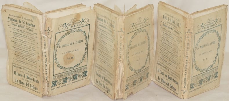 In 24. Dim. 14x10 cm. Pp. 171+(1), 163+(1), 158+(2). Edizione del 1859 di questo romanzo dello scrittore francese Francois Guillaume Ducray Dumenil (1761-1819). L'opera era composta da cinque volumi, siamo purtroppo in possesso dei tomi dal terzo al quinto. In ogni antiporta è presente un incisione. In mediocri condizioni. Copertina editoriale in mediocri condizioni generali con usure e parti mancanti ai margini e dorso. copertina in parte staccata. Piatto del tomo terzo staccato. Legatura quasi assente. All'interno le pagine si presentano in buone condizioni con fioriture. Edition of 1859 of this novel by the french writer Francois Guillaume Ducray Dumenil (1761-1819). The work was made up of five volumes, unfortunately we only have from third tome until fifth tome. A print in each frontspice. In poor conditions. Editorial cover in poor general conditions with wearings and missing parts in the edges and spine. Cover partially detached and plate of third tome detached. Binding is almost missing. Inside pages are in good conditions with foxings.