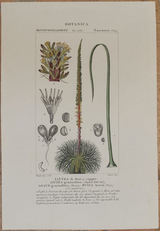 Eccellente incisione creata dal maestro Pierre Jean Francis Turpin. Le scritte indicanti la specie e la descrizione della pianta o animale sono in italiano e/o latino, e provengono dalla prima edizione italiana del Dizionario di scienze naturali edito da Battelli nel 1831. Quest'opera imponente era composta da 29 volumi ed era corredata da centinaia di incisioni che rappresentavano tutto il mondo animale e vegetale. L'opera deriva da un eccellente lavoro di luminari del XVIII secolo supportati dal Re francese Louis XV in seguito guidati dallo stesso Turpin, considerato al tempo il più grande incisore di botanica. La maggior parte delle incisioni sono firmate Turpin & Pretre. Le incisioni sono veramente eccezionali con una grande dovizia di particolari e dipinte a mano. Carta bianchissima e resistente di ottima qualità. Formato foglio: cm 25x17. Formato incisione: cm 15x8,5 Autore: Corsi su disegno di Turpin In buone condizioni. Superb engraving made by the master Pierre Jean Francis Turpin. The engravings are written in latin and italian and come from the first italian edition of Dictionary of natural sciences edited by Battelli in 1831. This imponent work was made up by 29 volumes and contained hundreds of engravings that represented all the plant and animal kingdom. This work derives from an excellent work of luminaries of the 18th century supported by the french King Louis XV and then directed by the same Turpin that was considered as the greatest botanical engraver of his time. The most of his engravings are signed Turpin & Pretre. The engravings are made in an excellent way with fine details and coloured by hand. Very white strong paper of good quality. In good condition. Page size: cm 25x17. Print size: cm 15x9 Author: Corsi upon drawing of Turpin In good conditions.