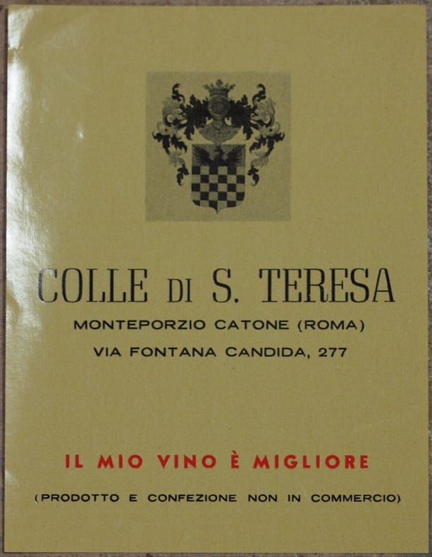 Bella etichetta del vino non in commercio prodotto a Colle di Santa Teresa. In buone condizioni. Formato cm. 13x10. Beautiful label of wine produced in Colle di Santa Teresa. Not for selling wine. In good conditions. Size cm. 13x10.