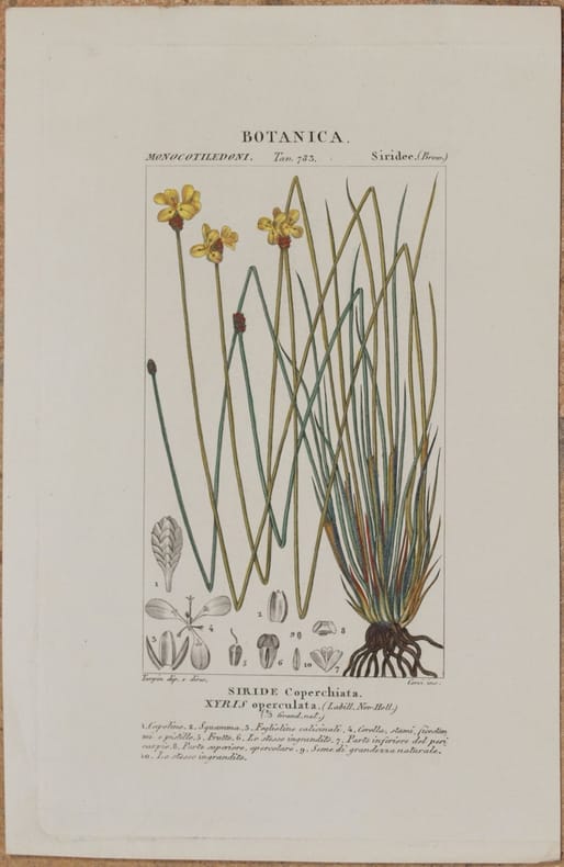 Eccellente incisione creata dal maestro Pierre Jean Francis Turpin.Le scritte indicanti la specie e la descrizione della pianta o animale sono in italiano e/o latino, e provengono dalla prima edizione italiana del Dizionario di scienze naturali edito da Battelli nel 1831. Quest'opera imponente era composta da 29 volumi ed era corredata da centinaia di incisioni che rappresentavano tutto il mondo animale e vegetale. L'opera deriva da un eccellente lavoro di luminari del XVIII secolo supportati dal Re francese Louis XV in seguito guidati dallo stesso Turpin, considerato al tempo il più grande incisore di botanica. La maggior parte delle incisioni sono firmate Turpin & Pretre. Le incisioni sono veramente eccezionali con una grande dovizia di particolari e dipinte a mano. Carta bianchissima e resistente di ottima qualità. Formato foglio: cm 25,5x16,5. Formato incisione: cm 15x9 Autore: Corsi su disegno di Turpin In buone condizioni. Superb engraving made by the master Pierre Jean Francis Turpin. The engravings are written in latin and italian and come from the first italian edition of Dictionary of natural sciences edited by Battelli in 1831. This imponent work was made up by 29 volumes and contained hundreds of engravings that represented all the plant and animal kingdom. This work derives from an excellent work of luminaries of the 18th century supported by the french King Louis XV and then directed by the same Turpin that was considered as the greatest botanical engraver of his time. The most of his engravings are signed Turpin & Pretre. The engravings are made in an excellent way with fine details and coloured by hand. Very white strong paper of good quality. In good condition. Page size: cm 25,5x16,5. Print size: cm 15x9 Author: Corsi upon drawing of Turpin In good conditions.<BR>