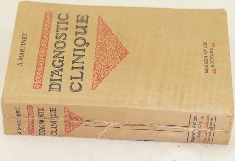 In 8. Dim. 24x16x5 cm. Pp. XII+995+(1). Edizione del 1920 di questa opera di clinica diagnostica scritto da Martinet. L'opera è in un voume ed è completa. All'interno: diagnostica, tecniche mediche (esame del tubo digerente, vie respiratorie), esame dell'apparato circolatorio, genito urinario, sistema nervoso, parassitologia, batteriologia), organizzazione dell'esame medico, semiologia medica ecc... Numerose illustrazioni, planches e foto all'interno In discrete condizioni. Copertina editoriale in discrete condizioni generali con usure e parti mancanti ai margini e dorso. Legatura in discrete condizioni con rotture. All'interno le pagine si presentano in ottime condizioni con rare fioriture. Edition of 1920 of this work of diagnostic clinics written by Martinet. The work is in one volume and it is complete. Inside: diagnostic, medical techniques (examination of digestion, breathing), examination of circulatory system, genitary system, nervous system, parassitology, batteriology), organization of medical examination, medical semiology ecc.. Sifferent illustrations, planches and photoes inside. In fair conditions. Editorial cover in fair general conditions with wearings and missing parts in the edges and spine. Binding in fair conditions with cracks. Inside pages are in very good conditions with occasional foxings.