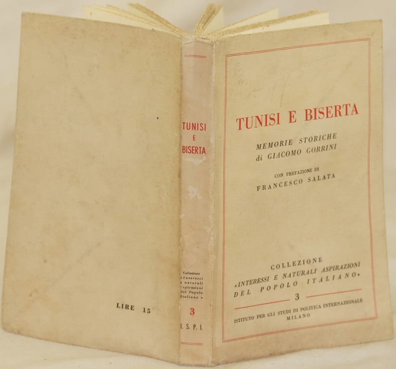 In 8. Dim. 20,5x13 cm. Pp. XVI+198+(2). Edizione del 1940 di queste memorie storiche su Tunisi e Biserta scritte da Giacomo Gorrini. Prefazione a cura di Francesco Salata. All'interno: Leggenda e storia (1878-1881), Studio storico politico per Francesco Crispi (1889-1890), Diario tunisino dal 1878 al 1881, Relazione confidenziale per il Marchese di Rudinì (1892)Storia del protettorato francese in Tunisia, Biserta ecc... Alcuni articoli di giornale ritagliati insieme al volume (Molti libri e molto jazz a Beyrouth - 1990, Sulla soglia dell'Oriente 1990). In ottime condizioni. Copertina editoriale in ottime condizioni generali con lievi usure ai margini e dorso. Legatura in buone condizioni. All'interno le pagine si presentano in ottime condizioni con rare fioriture. Edition of 1940 of this historical memories about Tunisi and Biserta written by Giacomo Gorrini. Prefation by Francesco Salata. Inside: Legend and history (1878-1881), Historical political study for Francesco Crispi (1889-1890), Tunisian diary from 1878 until 1881, Confidential report for Marchese di Rudinì (1892) History of frenhc protector in Tunisia, Biserta etc... Some articles cut with the volume (Molti libri e molto jazz a Beyrouth - 1990, Sulla soglia dell'Oriente 1990). In very good conditions. Editorial cover in very good general conditions slightly worn in the edges and spine. Binding in good conditions. Inside pages are in very good conditions with occasional foxings.