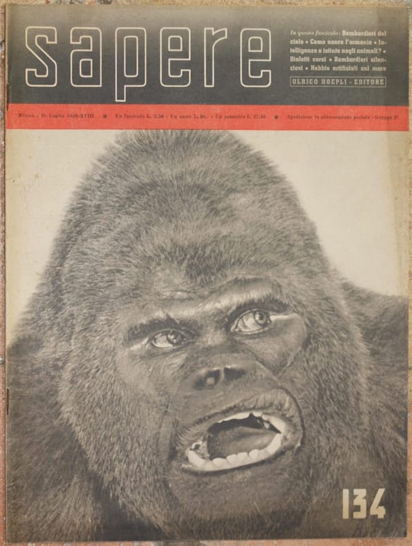 In folio. Dim. 32,5x24,5 cm. Pp. da 39 a 64. Numero del 31 luglio 1940 della più antica rivista di divulgazione scientifica italiana fondata nel 1935. Tra gli articoli all'interno: Bombardieri dal cielo, La sezione aurea, Intelligenza o istinto negli animali, Dialetti corsi, La lue venerea, Grande congiunzione di Giove con Saturno, Nebbia artificiale nella guerra marittima ecc... Numerose foto e illustrazioni all'interno. Brossura editoriale originale. Note manoscritte. In buone condizioni. Brossura editoriale in buone condizioni generali con lievi usure e parti mancanti ai margini e dorso. Legatura in buone condizioni. Pagine in buone condizioni con rare fioriture. Number of the 31st of july 1940 of the most ancient magazine of scientiphic divulgation established in 1935. Betweent eh articles inside: Launch of bombs form the sky, Golden section, Intelligence or instinct in animals, Dialects of Corsica, lue venerea, Great connection of Giove with Saturno, Artificial frog in sea war etc... Different photoes and illustrations inside. Original editorial cover. Handwritten notes. In good conditions. Editorial cover in good general conditions slightly worn in the edges and spine. Foxings. Binding in good conditions. Pages are in good conditions with occasional foxings.