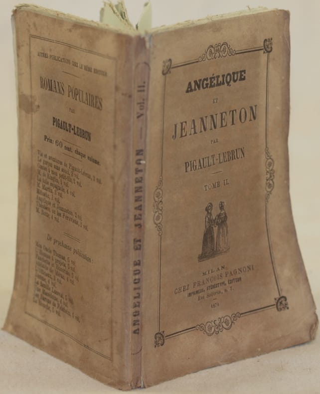 In 16. Dim. 16x11 cm. Pp. 159. Edizione francese del 1870 in pregiata carta azzurra di questo romanzo del romanziere e drammaturgo francese Pigault Lebrun (1753-1835). L'opera era composta da due volumi, siamo purtroppo in possesso solo del secondo tomo. Illustrazione e decorazioni in copertina. In buone condizioni. Copertina editoriale in buone condizioni generali con lievi usure ai margini e dorso. Legatura in buone condizioni. All'interno le pagine si presentano in buone condizioni con fioriture. French edition of 1870 in precious light blue paper of this novel by the french novelist and dramawriter Pigault Lebrun (1753-1835). The work was made up of two volumes, unfortunately we only have the second tome Illustration and decorations in the cover. In good conditions. Editorial cover in good general conditions slightly worn in the edges and spine. Binding in good conditions. Inside pages are in good conditions with foxings.
