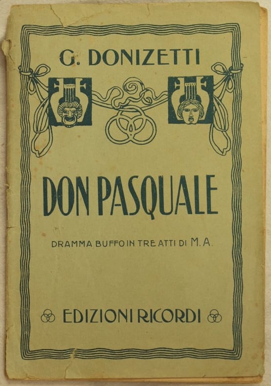 In 16. Dim. 20x13,5 cm. Pp. 32. Bel libretto d'opera del febbraio 1912 dell'opera dramma buffo in tre atti "Don Pasquale" di Gaetano Donizetti (1797-1848). La prima rappresentazione ebbe luogo al Theatre Italien di Parigi il 3 Gennaio 1843 In discrete condizioni. Bella brossura editoriale illustrata. Brossura editoriale in buone condizioni generali con lievi usure ai margini e dorso; macchie. Piatto anteriore quasi staccato. Legatura in buone condizioni. All'interno le pagine si presentano in buone condizioni con fioriture. Macchie al frontespizio. Beautiful booklet of february 1912 of the work in three acts "Don Pasquale" by Gaetano Donizetti (1797-1848). The first representation took place in the Theatre Italien in Paris the 3rd of January 1843. In good conditions. Illustrated editorial cover. Editorial cover in fair general conditions slightly worn in the edges and spine; stains. Front plate almost detached. Binding in good conditions. Inside pages are in good conditions with foxings. Stains in the title page.