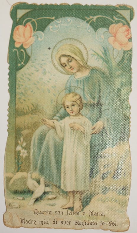In 24. Dim. cm 10,5x6. Immaginetta sacra di Vergine Santissima del 1902. In buone condizioni. Holy image of Very Holy Virgin of 1902. In good conditions.