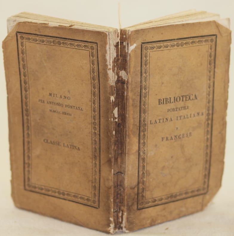 In 24. Dim. 14x8,5 cm. Pp. VIII+208. Edizione del 1828 di questa nota opera di Cornelio Nepote, "De viris illustribus", raccolta della vita di famosi generali e di storici latini della collana "Biblioteca portatile latina italiana e francese". I personaggi: Miltiade, Temistocle, Aristide, Pausania, Cimone, Lisandro, Alcibiade, Trasibulo, Conone, Dione, Ificrate, Cabria, Timoteo, Datame, Epaminonde, Pelopiole, Agesilo, Eumene, Facio, Timoleo, Amilcare, Annibale, Catone e Attico. Testo latino commentato da Francesco Ambrosoli. In buone condizioni Copertina editoriale in buone condizioni generali con lievi usure ai margini e dorso. Legatura in discrete condizioni con rotture. All'interno le pagine si presentano in buone condizioni con fioriture. Edition of 1828 of the famous work "De viris illustribus" written by Cornelius Nepos, a collection of lives of famous ancient captains and latin historians. Latin text with comment by Francesco Ambrosoli. In good conditions. Editorial cover in good general conditions slightly worn in the edges and spine. Binding in fair conditions with cracks. Inside pages are in good conditions with foxings.