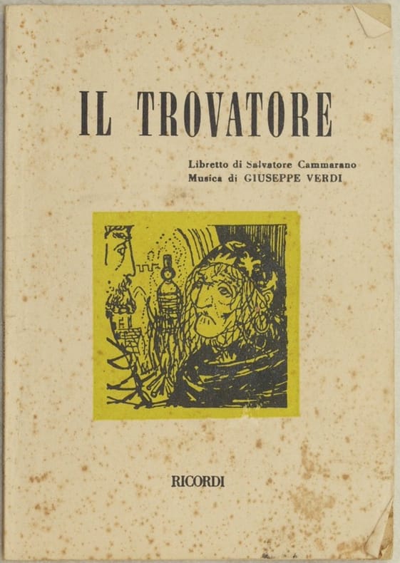 In 16. Dim. 15x10,5 cm. Pp. 62. Edizione del 1982 de "Il trovatore" di Giuseppe Verdi (1813-1901). L'opera venne rappresentata per la prima volta il 19 gennaio 1853 al Teatro Apollo di Roma. In ottime condizioni. Copertina editoriale in ottime condizioni generali con lievi usure ai margini e dorso. Legatura in buone condizioni. All'interno le pagine si presentano in ottime condizioni con fioriture. Edition of 1982 of this booklet Il trovatore by the italian composer Giuseppe Verdi (1813-1901). The work was represented for the first time the 19th of january 1853 in the Teatro Apollo of Rome. In good conditions Editorial cover in good general conditions slightly worn in the edges and spine. Binding in good conditions. Inside pages are in very good conditions with occasional foxings.