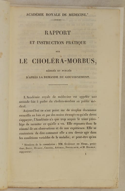 In 8 cm. 21x13,5. Pp. 32.Interessante pubblicazione medica del 1832 edito dalla Academie Royale de medecine, il rapporto e istruzione pratica sul colera durante l'epidemia del 1832.<BR>In buone condizioni e completo. Copertina morbida posticcia in buone condizioni generali con lievi usure ai margini e dorso. Legatura in buone condizioni. All'interno le pagine si presentano in buone condizioni con rare fioriture. Interesting medical pamphlet of 1832 edited by Academie Royale de medecine, the report and instruction about cholera during epidemic of 1832. In good conditions and complete. Soft false cover in good general conditions slightly worn in the edges and spine. Binding in good conditions. Inside pages are in good conditions with occasional foxings.