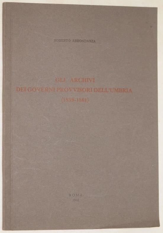 In 8. Dim. 24x17 cm. Pp. da 331 a 415. Interessante pubblicazione del 1962 sugli archivi dei governi provvisori dell'Umbria (1859-1861) scritto da Roberto Abbondanza edito dal Ministero dell'interno. Estratto da "Gli archivi dei governi provvisori e straordinari 1859-1861 III, Roma 1962. Si tratta dell'inventario delle carte conservate nell'Archivio di Stato di Perugia. Dedica manoscritta dell'autore senza firma. In ottime condizioni. Copertina editoriale in ottime condizioni generali con lievi usure ai margini e dorso. (vedere foto). Legatura in buone condizioni. All'interno le pagine si presentano in ottime condizioni con rare fioriture. Interesting pamphlet of 1962 about archives of governments of Umbria (1859-1861) written by Roberto Abbondanza edited by Ministero dell'interno. Extract from "Gli archivi dei governi provvisori e straordinari 1859-1861 III, Rome 1962.It is the inventary of maps in the Archive of State of Perugia. Handwritten dedication of the author without signature. In very good condizioni. Editorial cover in very good general conditions slightly worn in the edges and spine. Binding in good conditions. Inside pages are in very good conditions with occasional foxings.