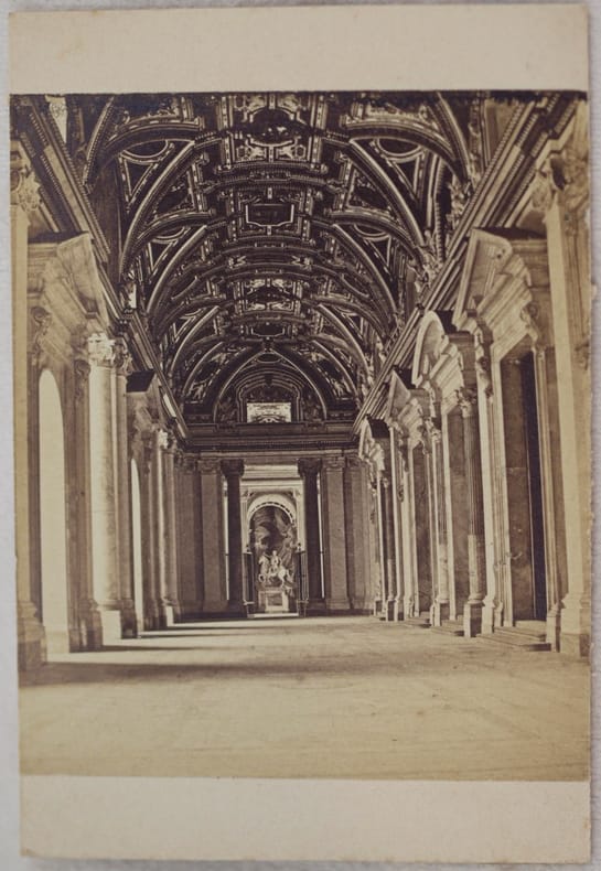 Foto originale all'albumina del 1870 circa che mostra l'atrio della Basilica di San Pietro a Roma. La fotografia è applicata su cartoncino originale non marchiato Dimensioni cartoncino: mm 98x66. Dimensioni foto: mm 79x66. In ottime condizioni.Original albumine photo of 1870 circa showing the interior of Basilica di San Pietro in Rome. The photo has been applied in an original not marked carton paper. Size of page: mm 98x66. Size of the photo: mm 79x66. In very good conditions.