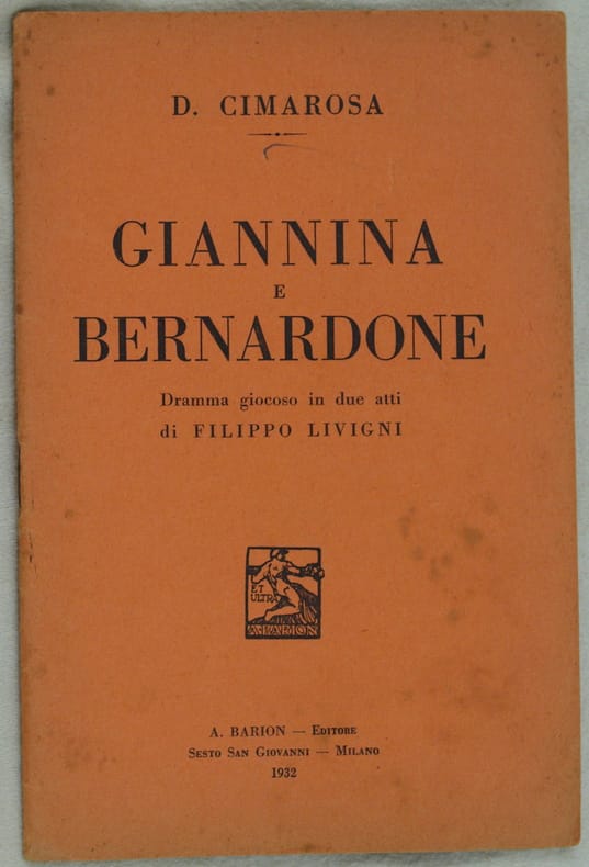 In 16. Dim. 18,5x12 cm. Pp. 32. Bel libretto d'opera del 1932 dell'opera "Il matrimonio segreto" di Domenico Cimarosa su libretto di Filippo Livigni. In buone condizioni. Brossura editoriale in buone condizioni generali con lievi usure ai margini e dorso. Legatura in buone condizioni. All'interno le pagine si presentano in buone condizioni con rare fioriture. Beautiful booklet of 1932 of the work "Il matrimonio segreto" by Domenico Cimarosa on booklet by Filippo Livigni.<BR>In good conditions. Editorial cover in good general conditions slightly worn in the edges and spine. (see the photo). Binding in good conditions. Inside pages are in good conditions with occasional foxings.