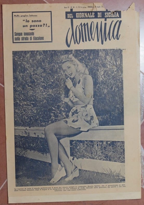 In folio. Dim. 41,5x29,5 cm. Pp. 12.Numero del 28 luglio 1946 di questo quotidiano nazionale siciliano fondato nel 1860 a Palermo e diretto da Girolamo Ardizzone. Il giornale venne fondato subito dopo l'arrivo in Sicilia di Giuseppe Garibaldi. Tra gli argomenti trattati: Una favorita sotto la mannaia, Pacchi dall'america, Sangue innocente sulla strada di Giacalone (Carabiniere Salvatore Scala da Pozzallo) Monreale, Palermo si diverte: una sera al Garden Club, Una lieta sorpresa per i bagnanti di Romagnolo ecc.. Belle pubblicità. In discrete condizioni. Raro. Brossura editoriale in buone condizioni generali con lievi usure ai margini e dorso (vedere foto). Legatura assente. All'interno le pagine si presentano in discrete condizioni con rare fioriture. Usure e strappi ai margini. Alcuni segni di tarlo. Number of the 28th of july 1946 of this daily national sicilian magazine established in 1860 in Palermo and directed by Girolamo Ardizzone. The magazine was established after the arrival in Sicily of Giuseppe Garibaldi.. Between the issues treated: nPArcels from America, Innocent blood on the street of Giacalone (Carabiniere Salvatore Scala from Pozzallo) Monreale, Palermo entertains: one night in Garden Club, A surprise for bath in Romagnolo etc.. Beautiful advertisings inside.In good conditions.Scarce copy. Editorial cover in good general conditions slightly worn in the edges and spine (see the photo). Binding is missing. Inside pages are in good conditions with occasional foxings with tears and wearings.
